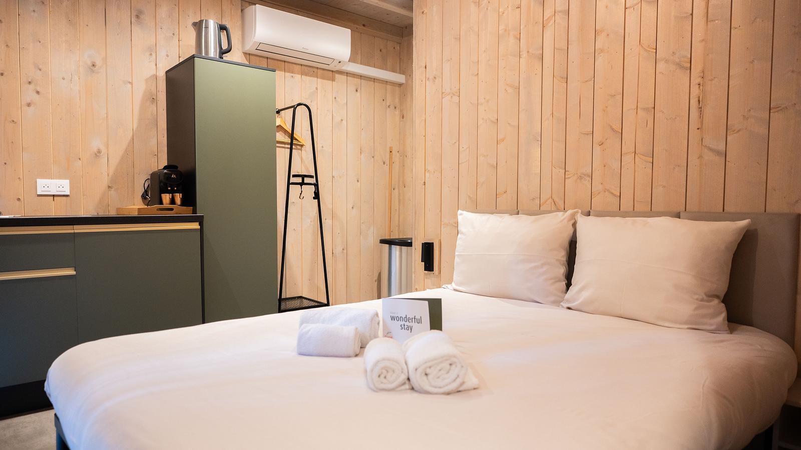 Onze cocoons zijn ideaal voor koppels of soloreizigers. Je geniet van een comfortabele kamer met eigen badkamer, midden in de natuur, met privéterras. Belangrijk: de cocoons hebben geen kitchenette.